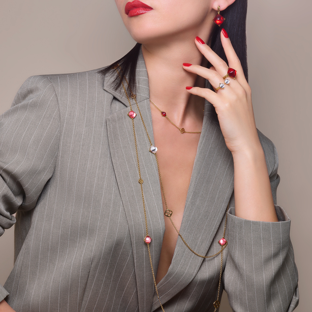 Baccarat hat die Kollektion Médicis als Ikone wieder aufgegriffen, dessen elegante Kristallform die Leichtigkeit und Einfachheit eines Zuckerhuts kennzeichnet. Strahlendes farbiges Kristall verbindet sich harmonisch mit der fassung des Rings.