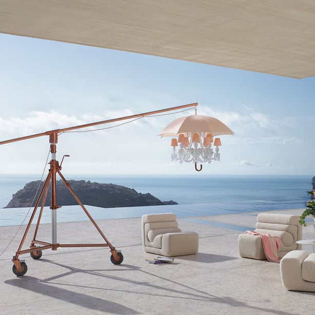 Once upon a time, Marie Coquine, dressed all in pink. Ever more subversive and surreal, the Marie Coquine chandelier is disclosed in a new all-pink version. An impertinent and poetic reinterpretation of the Zenith icon, “…Marie Coquine Rosit…” signs the improbable union of twistedobjects. On an imposing photo stand, the chandelier surmounted by an umbrella, is kept in balance thanks to a pink leather punching bag. With humor and poetry, Philippe Starck disturbs the order of things to take the viewer into a fabulous vertigo.