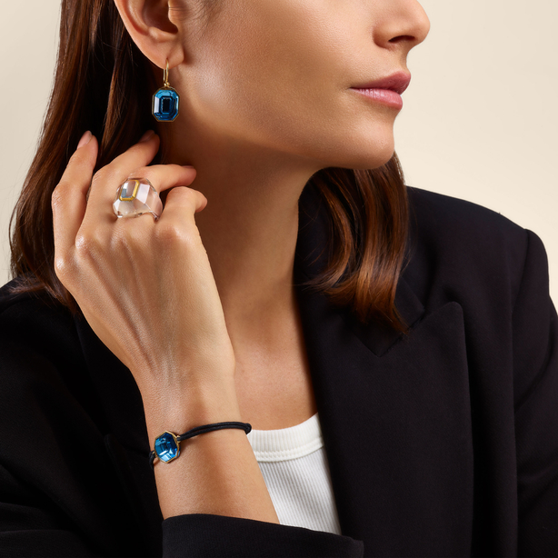 A combination of materials for a modern and sophisticated style! Mounted on a waxed string, the Harcourt octagon-shaped bracelet will add a touch of brilliance to all your outfits. 180 years of elegance and seduction! Thomas Bastide celebrates the star of glasses and expresses the Harcourt spirit in a collection of jewelry with personality, radiant with modernity. In clear or red mirror, blue Riviera or blue-green scarab, the iconic Baccarat octagon sublimated by a thin vermeil setting transforms into an essential fashion accessory for all seasons.