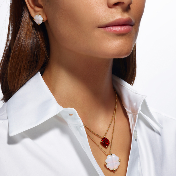 The four-leaf clover revisited in crystal by Baccarat is transformed into talisman jewelry. White, red or green, the Trèfle necklace is perfect with all styles. Mounted on vermeil, the Trèfle collection includes rings, earrings, bracelets, pendants and necklaces of different colors: iridescent white for long summer days, fatal red for the evening or vibrant green for the more daring. The perfect gift to bring good luck to all the ones we love.