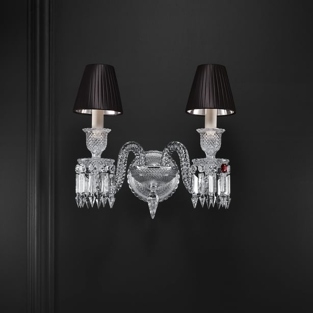 Set of 6 lampshades in black pleated fabric with aluminium interior reflector for Zenith chandelier
