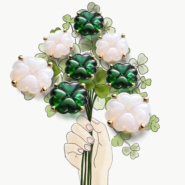 The four-leaf clover revisited in crystal by Baccarat is transformed into talisman jewelry. White, red or green, the Trèfle pins light up your most beautiful outfits! Mounted on vermeil, the Trèfle collection includes rings, earrings, bracelets, pendants, pins and necklaces of different colors: iridescent white for long summer days, fatal red for the evening or vibrant green for the more daring. The perfect gift to bring good luck to all the ones we love.