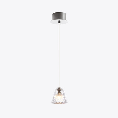 A master in the art of harmoniously blending past and future, craftsmanship and innovation, whether stylistic or technical, Marcel Wanders drew inspiration from Baccarat's emblematic chandelier clochettes to design a lighting collection imbued with elegance and enchantment. Like a suspended dream, its clochettes dance in the air, held in place by an almost invisible thread. Adorned with the New Antique cut motif, they amplify light in a symphony of sparkling reflections.