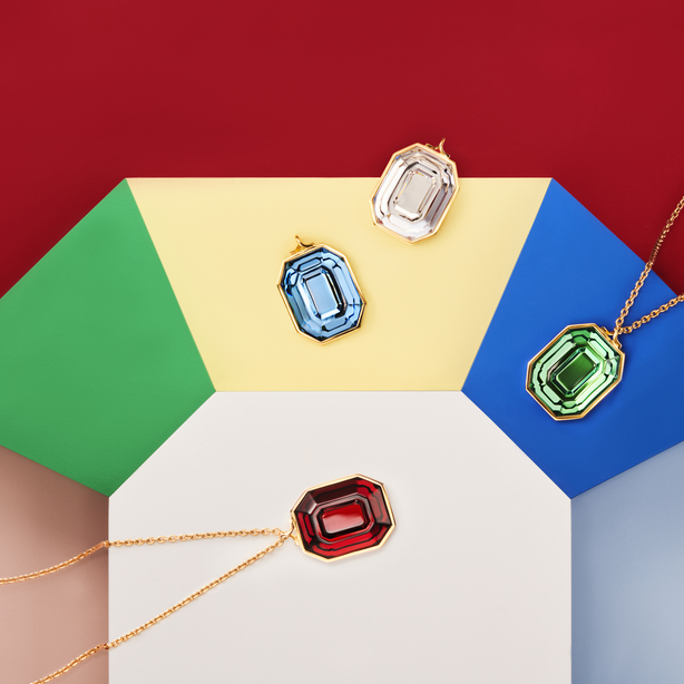 Mounted in vermeil, the Harcourt octagon-shaped pendant is adorned with a thousand reflections. An essential piece, to wear alone or as a set for an ultra sophisticated look. Vermeil chain available in two lengths for a mix and match effect. 180 years of elegance and seduction! Thomas Bastide celebrates the star of glasses and expresses the Harcourt spirit in a collection of jewelry with personality, radiant with modernity. In clear or red mirror, blue Riviera or blue-green scarab, the Harcourt pendant illuminates the face and elegantly enhances the neckline. Vermeil chain available in two lengths for a mix and match effect.