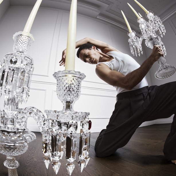 The Zenith collection, created at the end of the 19th century, is one of Baccarat’s most iconic lighting designs. The Zenith candelabra is luminously draped with geometrically cut crystal shapes, amongst which hangs Baccarat’s signature red octagonal crystal discreet yet striking. The lacquered aluminum base provides a solid foundation, which not only protects the crystal from any tremors but also gives the candelabra a hint of modern shine. The Zenith candelabra is available in two models that suit either two or four candles (candles not included with the candelabra). Glass hurricane shades may be added for an even more emphatically glowing effect. Philippe Starck revisited the Zenith collection in onyx crystal, which has proved to be as alluring in black as in Clear crystal.