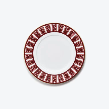 The Arcadia Red collection is a porcelain service comprising four sizes of plates and a “timbale”. Adorned with the Arcadia pattern, the dazzling white porcelain is enhanced by Baccarat's signature red and precious touches of gold.