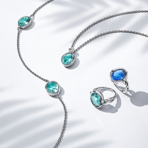 This turquoise crystal necklace intertwined in a silver frame proves to be the bright note of your outfit. Baccarat reveals its new collection Croisé, jewelry while femininity, accessible and timeless. With five models: ring, necklace, pendant, earrings and bracelet, the collection is adorned with strong colors mounted on vermeil or silver. To wear as you wish by playing on the mix and match of these delicate colors.