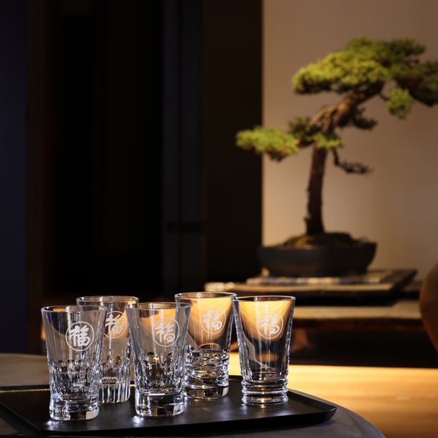 バカラが日本のライフスタイルのために作った「グラス ジャパン」に北大路魯山人の陶芸作品に描かれた「福」の字を刻みました。食することを「口福」と呼び、五感の総合体験と捉えた魯山人。そのエスプリは、フランスの生活芸術であり、使うひととき、注ぐ飲み物を特別なものにしてくれるバカラのグラスと見事に響き合います。ひとつひとつに違う福の形を描いた「グラス ジャパン」。使う人それぞれに、手にするたびに幸福が訪れますように。※このグラスは、足立美術館 許諾・監修のもと制作されました
