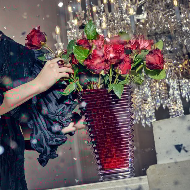 現代建築のような趣があり、モダンアートとしても楽しめます。 構築的な造形と光の反射や透過のマジックを駆使した作品を多く発表してきた、ニコラ・トリブロがデザインする「アイ」。内側の垂直方向の凹凸と外側の水平方向の凹凸が視覚上で重なって、独特の模様が浮かび上がり、その効果がまさにドラゴンフライ・アイ(トンボの複眼)を思わせるところから、「アイ」と名付けられました。下から上に向かって広がるシェイプは遠近法の表現を思わせ、ダイナミックな現代建築のような趣です。カラーはすべて*ラッカージュによるカラーリング。美しい発色は、モダンで明るい表情です。植物とのコーディネーションを楽しむのはもちろんのこと、そのままでもモダンアートのようにインテリアのアクセントとなります。*ラッカージュ : クリスタルに光を透過するカラー樹脂をコーティングし焼き付ける技術