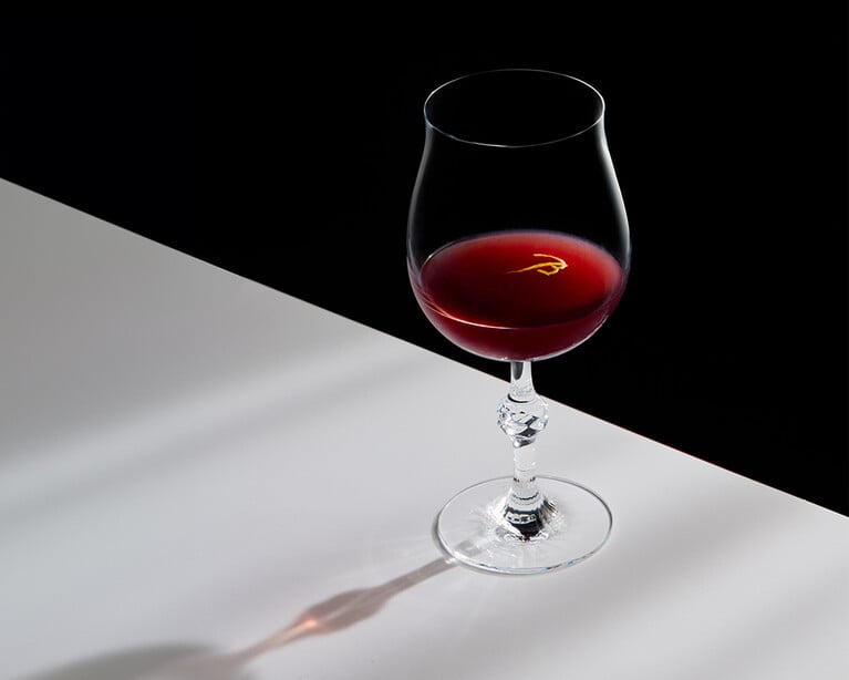 メルロー種のブドウジュースをベースに、フレーバードティーを組み合わせたエレガントなモクテル。渋みと甘みが絶妙に調和し、ベルガモットや柑橘の爽やかな香りが広がります。『パッション ワイングラス』で、赤ワインのような芳醇なアロマと、シナモンやクローブのスパイシーなアクセントをお楽しみください。
