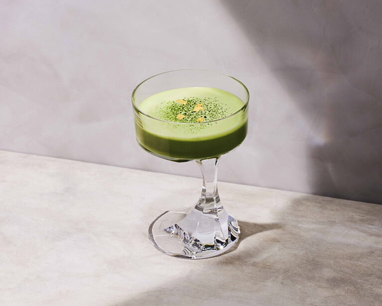 ほろ苦い抹茶とマスカルポーネチーズのコクが際立つ、クリーミーでまろやかなデザートカクテル。鮮やかなグリーンに金泊を添えて、優雅な華やぎも感じられます。