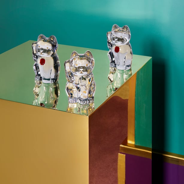 만화에 나올 법한 이 고양이가 오른손으로 하는 손짓이 재산을 지켜 준다고 합니다. 일본말로 마리네코라고도 하는 바카라의 클리어 크리스탈 고양이는 많은 부분이 디테일하고 정교하게 표현되어 있습니다. 고양이의 발, 이목구비, 목걸이 등에서 바카라가 공들여 개발한 기술의 흔적이 확연히 드러납니다. 고양이의 귀, 눈, 입, 수염에도 금박을 입혔습니다. 정교하게 제작된 이 행운의 상징이 여러분의 집으로 행운을 가져다 줄 것입니다. 미드나잇 크리스탈로 제작한 럭키 캣도 판매되고 있습니다.