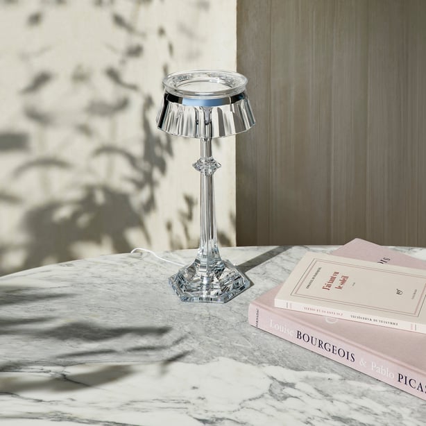 選擇Talleyrand by Starck系列水晶燈罩,為Bon Jour Versailles檯燈增添更多光彩。 全透明的優雅輪廓,致敬了水晶的純潔之美。作為Talleyrand by Starck系列的標誌性作品,燈罩刻面會產生光影變化,散發出獨特而詩意的光芒。此款燈罩適合小型Bon Jour Versailles檯燈。
